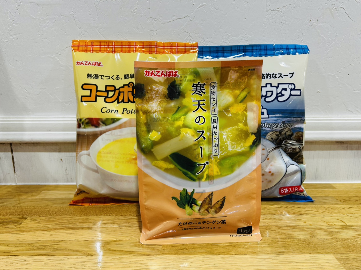 忙しい日々の中で少し小腹がすいた時は、便利なかんてんぱぱのスープがちょうどいい。寒天が入っているので体に優しくヘルシー。アツアツのお湯だけあればいいのでとても便利ですよ。